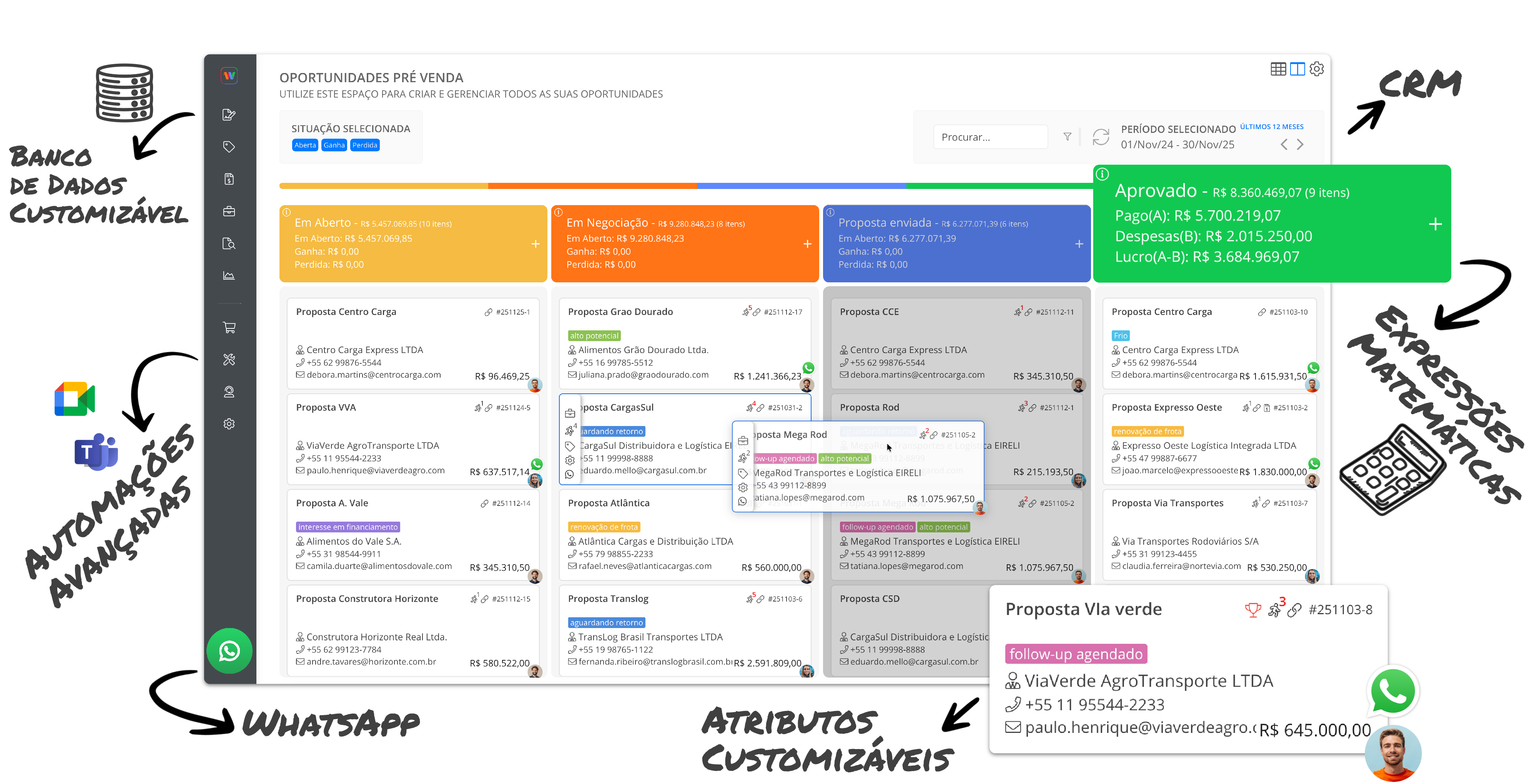 O único CRM do mercado que oferece flexibilidade total para criar expressões matemáticas avançadas e automatizar cálculos complexos em propostas técnicas.